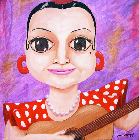 PaquitasPaquita es un personaje que creé en 2007 fruto de la fascinación por la estética del cómic y también por la obra de los artistas de la generación "Big eye", fusionándolas con el folklore andaluz.